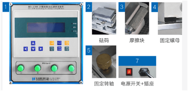 將標(biāo)準(zhǔn)滑塊置于軸桿上,通過摩擦塊固定標(biāo)準(zhǔn)摩擦紙,按照所需測試重量放置砝碼。