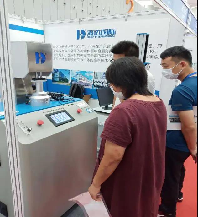 廣東海達(dá)儀器有限公司洞悉目前國(guó)內(nèi)和國(guó)外檢測(cè)設(shè)備行業(yè)市場(chǎng)現(xiàn)狀,針對(duì)檢測(cè)設(shè)備進(jìn)行研發(fā)。在本次展會(huì)上,海達(dá)展出了HD-K406口罩顆粒物過濾試驗(yàn)機(jī)、HD-B609B-S萬(wàn)能拉力試驗(yàn)機(jī)、恒溫恒濕箱,得到了參展者的強(qiáng)烈興趣和廣泛關(guān)注。